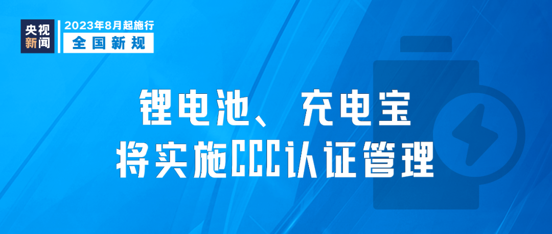 市場(chǎng)監(jiān)管總局發(fā)布公告,自2023年8月1日起,對(duì)鋰離子電池和電池組、移動(dòng)電源實(shí)施CCC認(rèn)證管理;自2024年8月1日起,未獲得CCC認(rèn)證證書(shū)和標(biāo)注認(rèn)證標(biāo)志的,不得出廠、銷(xiāo)售、進(jìn)口或者在其他經(jīng)營(yíng)活動(dòng)中使用。